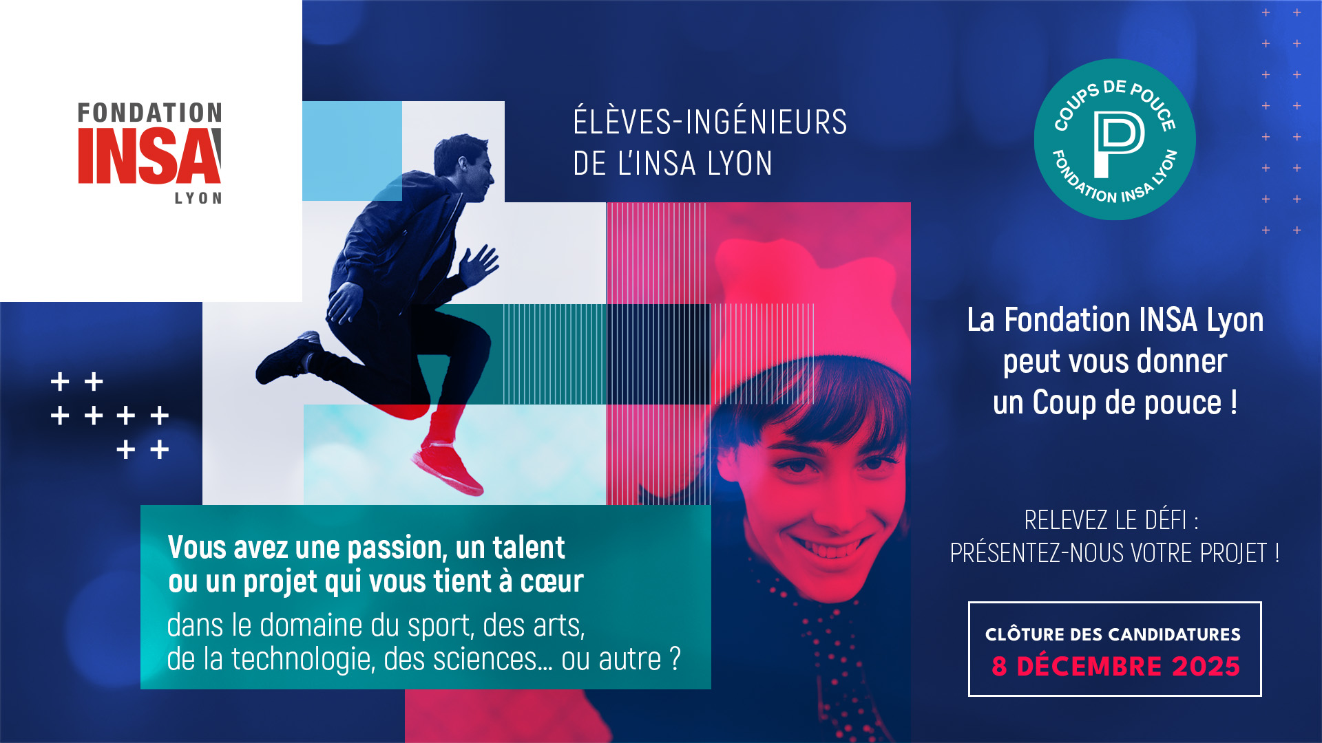 La Fondation INSA Lyon ouvre l’édition 2026 de son appel à projets Coups de Pouce et invite tous les élèves-ingénieurs à saisir cette opportunité pour donner vie à leurs passions et ambitions.